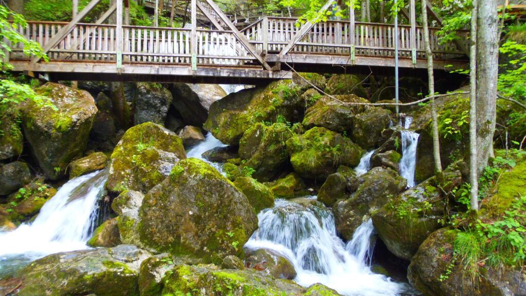 A Myrafälle Ausztria egyik legvarázslatosabb természeti látványossága: a víz több tucat kis zuhatagon és fahidakon keresztül rohan alá, miközben körülölel a friss hegyi levegő és az erdő illata.